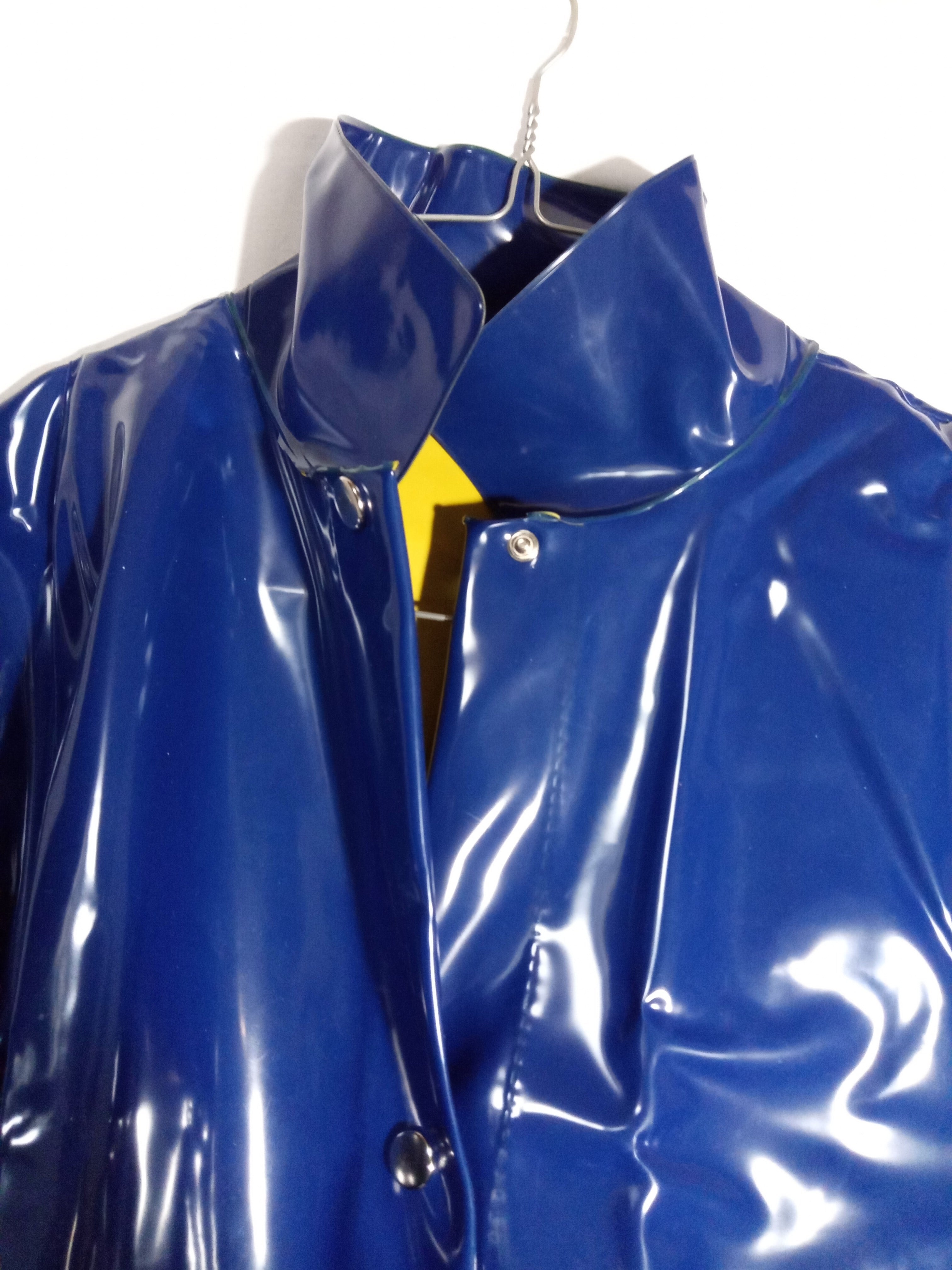 【PVC-U-LIKE】ロングコート ブルー×イエロー ベルトひも付き
